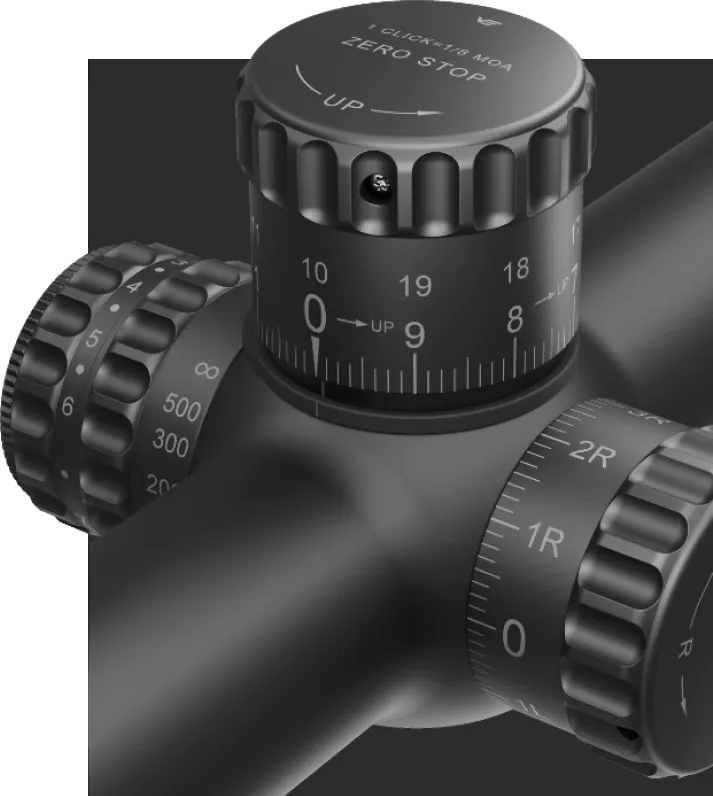 Благодаря Zero-Stop вы можете сделать поправки на дальнюю цель, а затем одним движением вернуть барабанчик поправок точно в исходное положение, не рискуя ошибиться или потерять настройку.